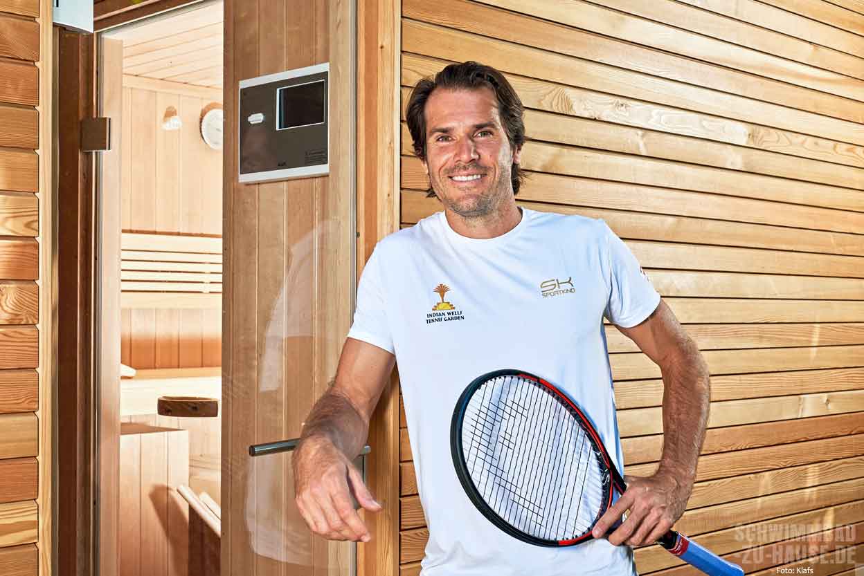 Ob im Hotel oder auf den großen, weltberühmten Tennisanlagen der Profi-Tour – Tommy Haas hat Zeit seiner langen Karriere nur wenig Gelegenheiten ausgelassen, um den „perfekten Abschluss des Tages“ zu genießen: einen ausgiebigen Gang in die Sauna.