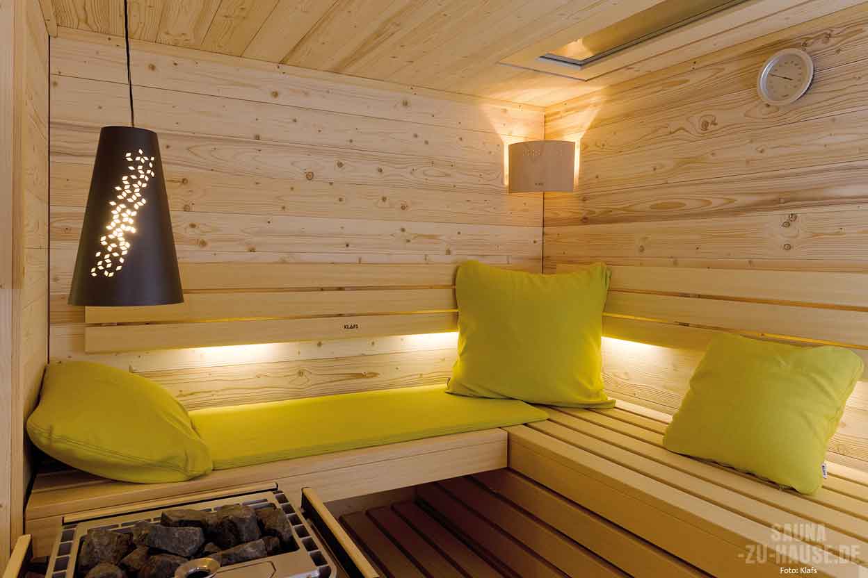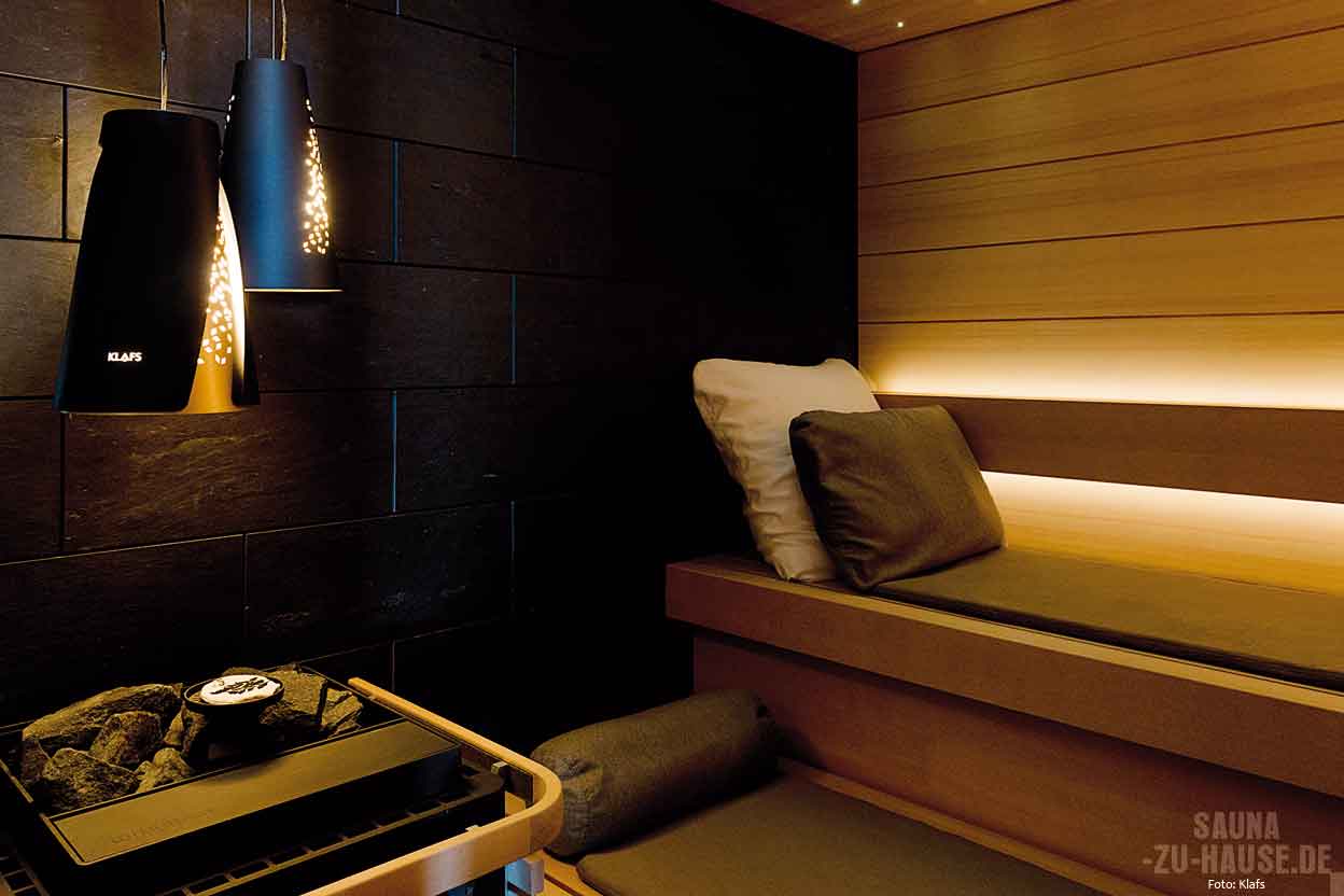 Wohnlichkeit beginnt bekanntermaßen beim Licht, weiß der Innenarchitekt, und hört nicht bei der Einheitsleuchte auf, die in der Saunaecke seit gefühlten Jahrzehnten in Stein, oder sagen wir besser, in die Paneele gemeißelt scheint. Mit den neuen Pendelleuchten „Romeo“ und „Julia“ wird nun nicht mehr nur für Helligkeit, sondern für Atmosphäre gesorgt: Das schmucke Paar hängt raumwirksam über dem Ofenbereich und tut das nicht nur optisch ansprechend, sondern technisch auch absolut saunatauglich. Die Hitze des Ofens und die Luftfeuchtigkeit in der Sauna können den Pendelleuchten nichts anhaben: Vor der Marktreife wurde das Leuchtenpaar in der Forschungsabteilung von Klafs eingehenden Langzeittests unterzogen.