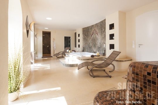 In einem denkmalgeschützten Bauernhof in Welver Klotingen ließ sich eine siebenköpfige Familie einen großzügigen Wellnessbereich errichten. Im ehemaligen Pferdestall finden sich heute eine Finnische Sauna, ein Dampfbad sowie weitere Vergnügungsmöglichkeiten.