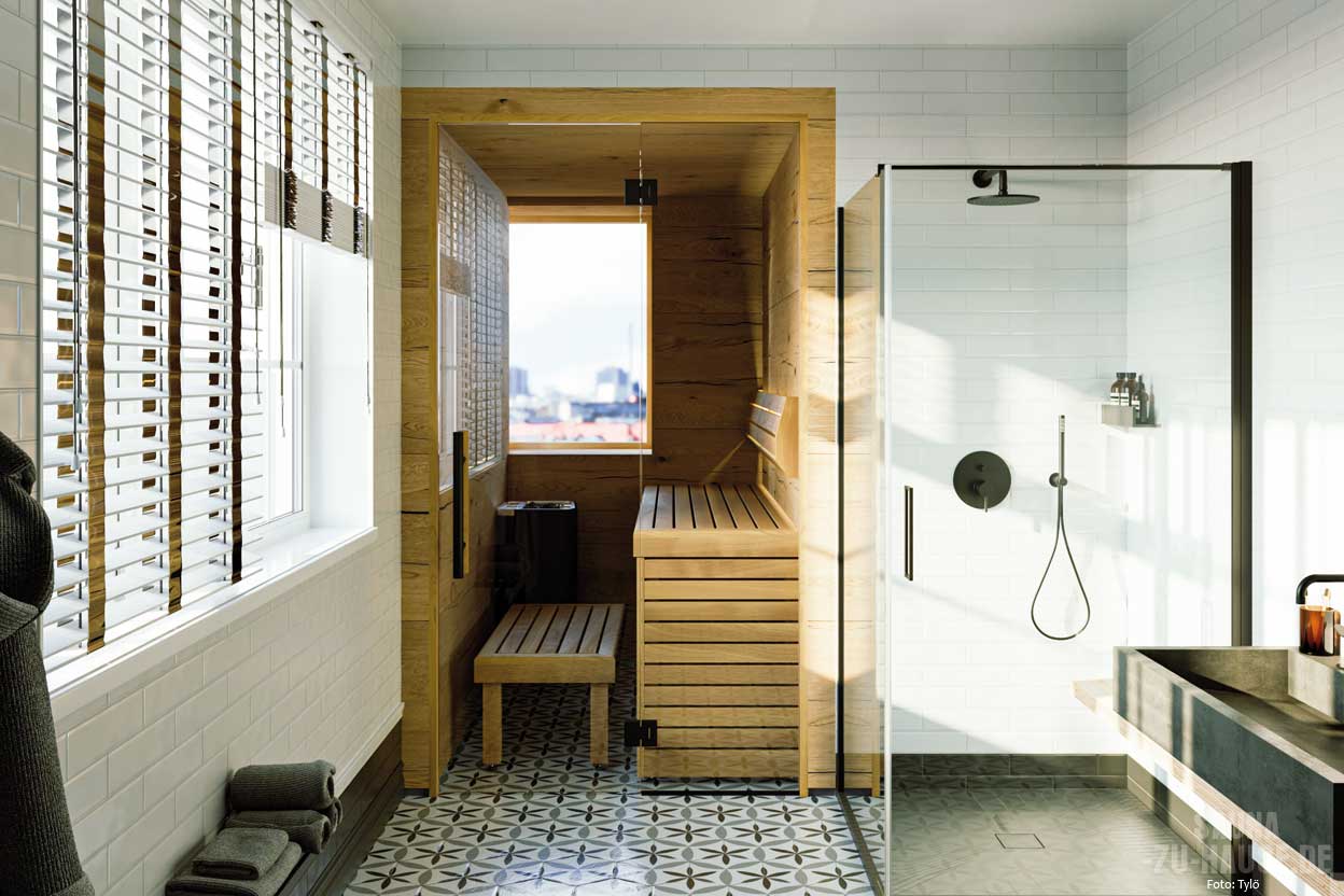 Tylö bietet maßgeschneiderte Saunalösungen, die perfekt auf Ihre Räumlichkeiten und Anforderungen zugeschnitten sind. Mit individuellen Grundrissen, Wandverkleidungen, Innenausstattungen und Beleuchtungsoptionen schaffen Sie Ihre persönliche Saunaoase. Diese Sauna ist perfekt in die Badnische eingefügt und hat sogar ein Fenster mit einem Blick nach außen. | tylo.de