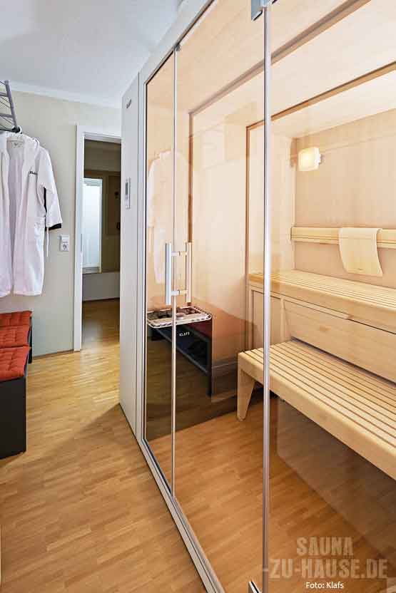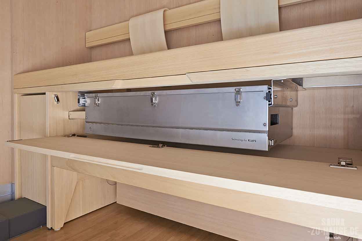 Da der Raum, in dem die S1 steht, mit seinen Maßen von 3,15 Meter auf 2,6 Meter recht klein ist und durch den „Sanarium“-Betrieb doch erhebliche Feuchte entsteht, sind die Greiners auch sehr angetan von der Option, die Klafs speziell für diese Fälle anbietet: „Das Abluftmodul SCC, das keine Feuchte oder Gerüche in den Raum lässt, ist wirklich eine prima Sache und macht das einzigartige Konzept der S1 so richtig rund.“