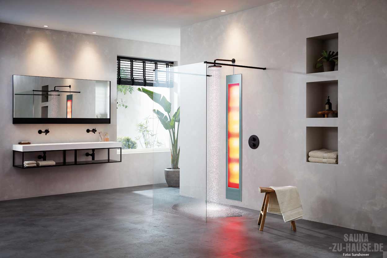 Um ganzjährig ausreichend mit Vitamin-D versorgt zu sein, müssen Sie nicht in sonnigen Ländern überwintern. So können Sonnenduschen im eigenen Zuhause helfen, den Vitamin D-Spiegel unabhängig von den Wetterbedingungen aufrechtzuerhalten. Wissenschaftliche Untersuchungen belegen dieses Phänomen für „Sunshower“. Der Körper wird dabei während des Sonnenduschens mit „Sunshower“-UV-Licht bestrahlt. Dabei entspricht eine Dusche mit „Sunshower“ etwa zehn Minuten mitteleuropäischer Sommersonne. So können Sie einem Vitamin D-Mangel auf angenehme Art und Weise vorbeugen und Ihr Wohlbefinden steigern. Laut Hersteller reichen rund 30 Minuten UV-Licht pro Woche in den dunklen Monaten aus, um die doppelte Vitamin-D-Bildung (bei Hauttyp 2) zu gewährleisten. Damit soll auch das Immunsystem im Kampf gegen Krankheitserreger gestärkt werden. Die „Sunshower“-Produkte werden in enger Zusammenarbeit mit Gesundheitsspezialisten entwickelt – dazu zählen Dermatologen sowie medizinische und wissenschaftliche Experten. Hinzu kommen regelmäßig durchgeführte Studien in Zusammenarbeit mit dem Universitätsklinikum Leiden (LUMC), Universitätsklinikum Amsterdam (VUMC) und der TU Delft. Das „Sunshower“-UV-Licht ist sicher und niedrig dosiert, das Infrarotlicht sorgt für eine angenehme Wärme. Ein tägliches Duschritual lässt Sie sich energetisch, fit und vital fühlen. Angeboten werden sowohl Aufputz- als auch Unterputz-Varianten. Für jedes Badezimmer finden Sie ein passendes Modell.