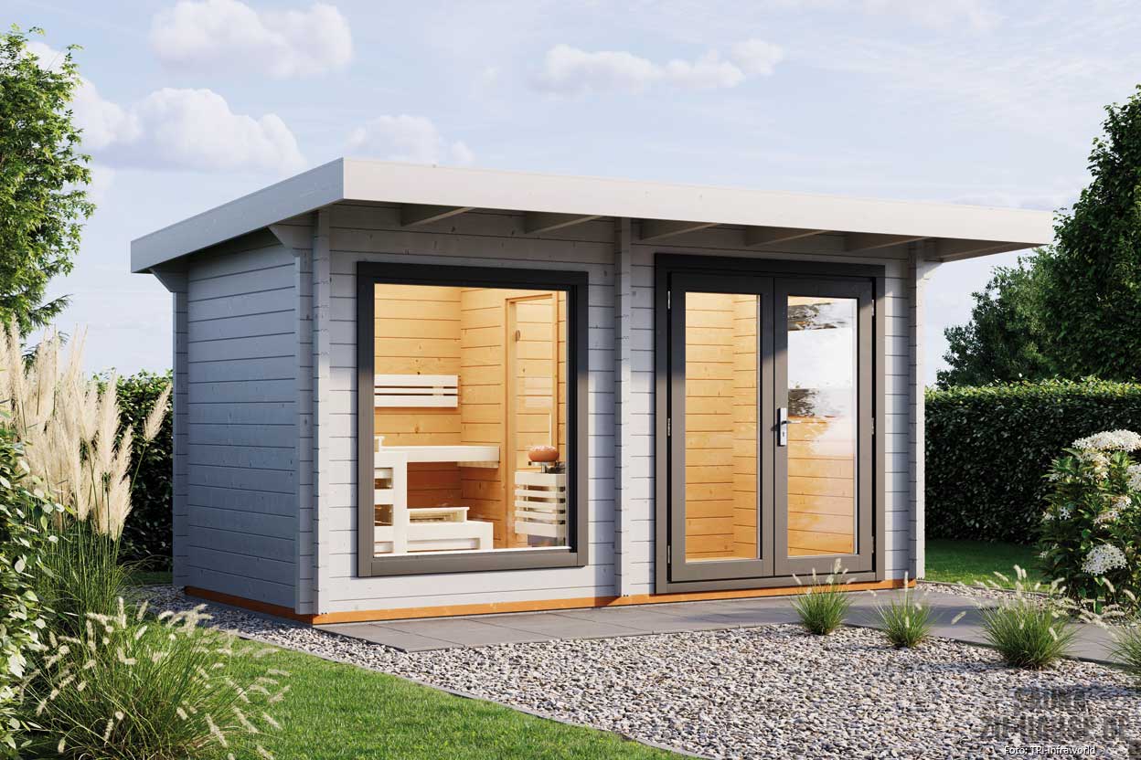 Entdecken Sie die Verbindung von Luxus und Natur mit der „Alpina Large View“ Sauna. In privaten Garten eingebettet, bietet sie nicht nur Platz für bis zu fünf Personen, sondern auch eine Oase der Ruhe und Erholung. Die hochwertige Fichtenholzverkleidung und die großzügige Kabinengröße verwandeln den