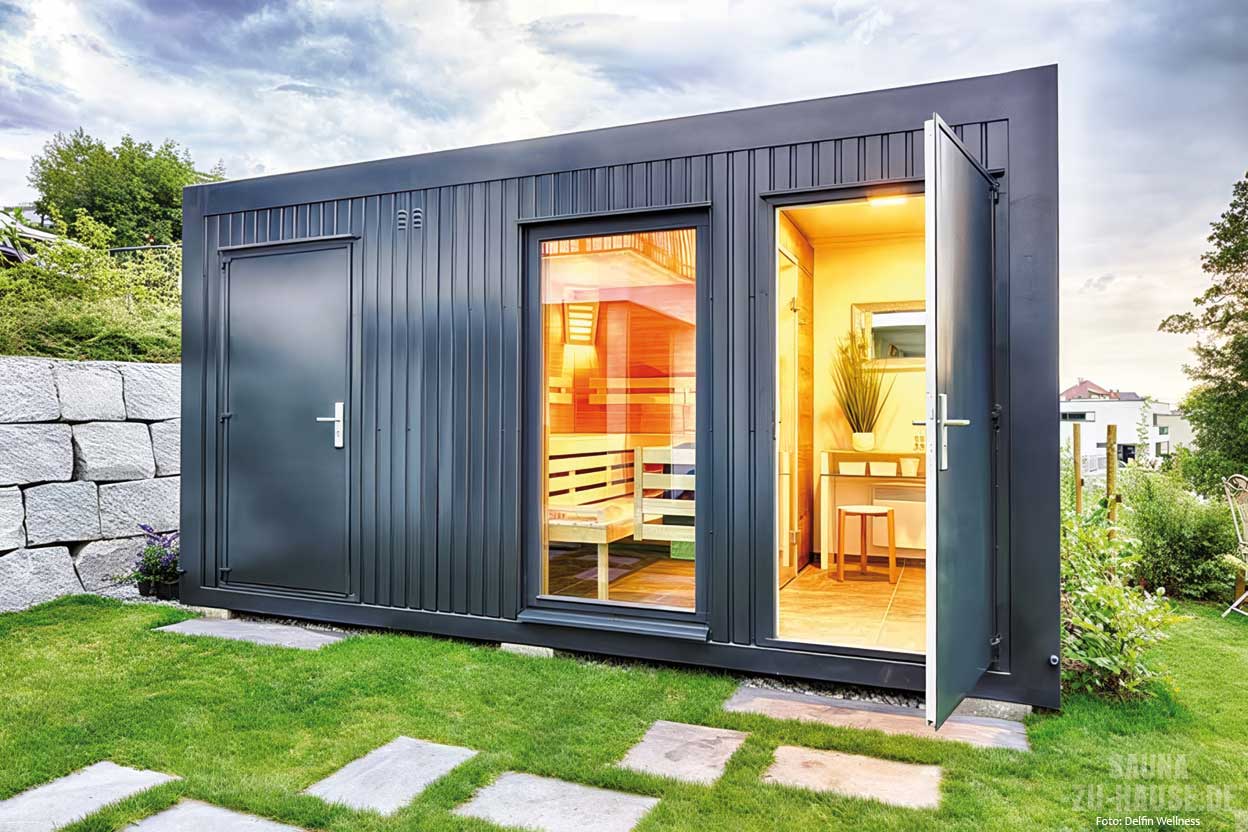 Ob unter der warmen Sommersonne, umgeben von buntem Herbstlaub, während eines sanften Schneefalls im Winter oder unter dem aufblühenden Frühlingshimmel – jede Jahreszeit verleiht der Sauna im Freien eine einzigartige Atmosphäre und einen besonderen Zauber. Die Außensauna von Delfin Wellness in Containerbauweise bietet modernen Saunagenuss ohne Fundament. Die flexible Versetzbarkeit durch die Containerbauweise ermöglicht zusätzlich maximale Freiheit. | www.delfin-wellness.at