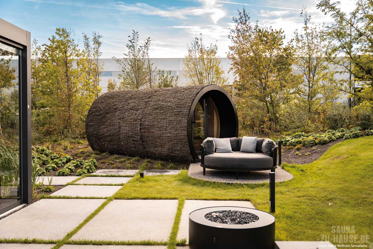 Was macht man nun, wenn man eine andere Form und nix geradliniges möchte? Die „Eclipse XL“ Sauna ist eine Outdoor-Wellnesskabine mit besonderem Look. Sie bietet zusätzlich zum Saunabereich optional Entspannungs-, Dusch- und Umkleideräume sowie Schlafräume und Büros. Das röhrenförmige Design mit verschiedenen Außenverkleidungsmöglichkeiten macht sie zu einem totalen Blickfang auf Hotelterrassen, in privaten Gärten oder an Berghütten. | www.alpha-wellness-sensations.de