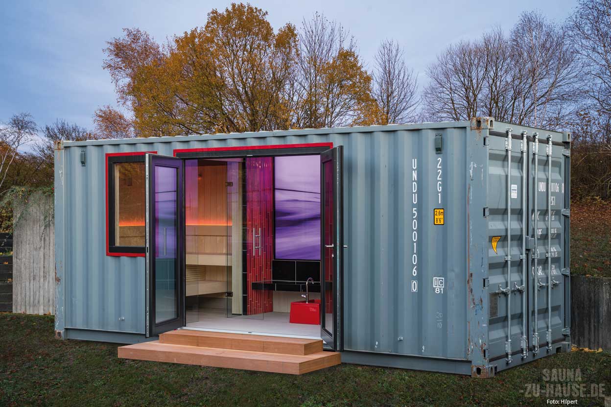 Container-Saunen nutzen den Raum auf innovative Weise, indem sie den Innenraum eines recycelten Frachtcontainers in eine gemütliche Saunakabine umwandeln. Das „Container Spa“ von Hilpert beinhaltet ein Dampfbad, eine Dusche, eine Wärmebank mit Fußbad sowie eine Sauna. Alle gestalterischen und inhaltlichen Komponenten können individuell nach Wunsch geplant und realisiert werden. Dabei kann der Seecontainer in seiner Optik bestehen bleiben oder eine Außenverkleidung erhalten. | www.hilpert.eu