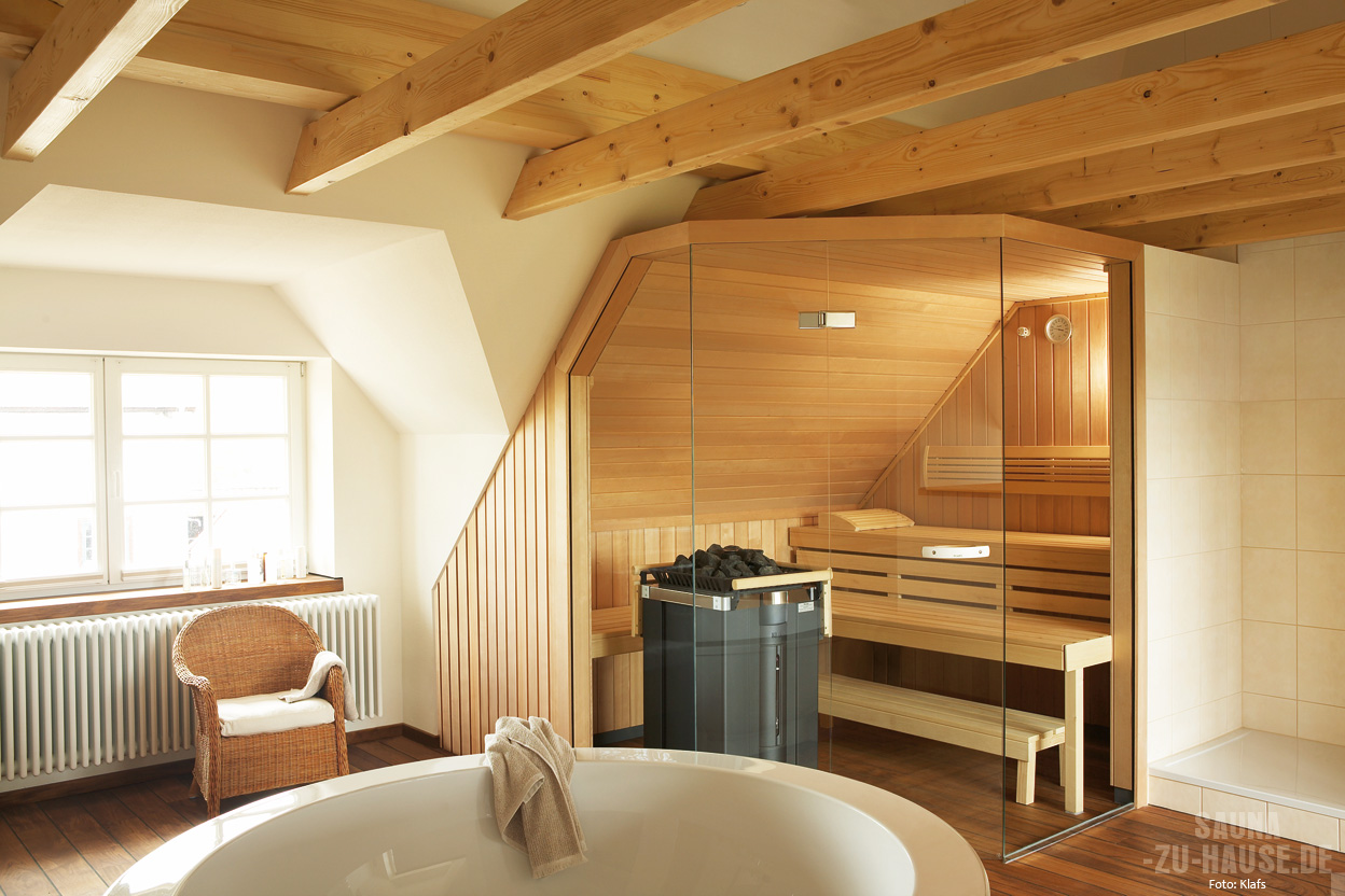 Die Integration der Sauna in den Raum ist, gerade bei knappem Platz, immer auch eine Stilsache. Fügt sich die Sauna harmonisch in den Einrichtungsstil und die architektonischen Gegebenheiten ein, wird der gesamte Raum als größer empfunden und nicht so, als enthalte er einen Fremdkörper. Besonders bei historischen Gebäuden, bei denen beispielsweise frei liegende Dachbalken zu sehen sind, sollte auf diesen Umstand geachtet werden.
