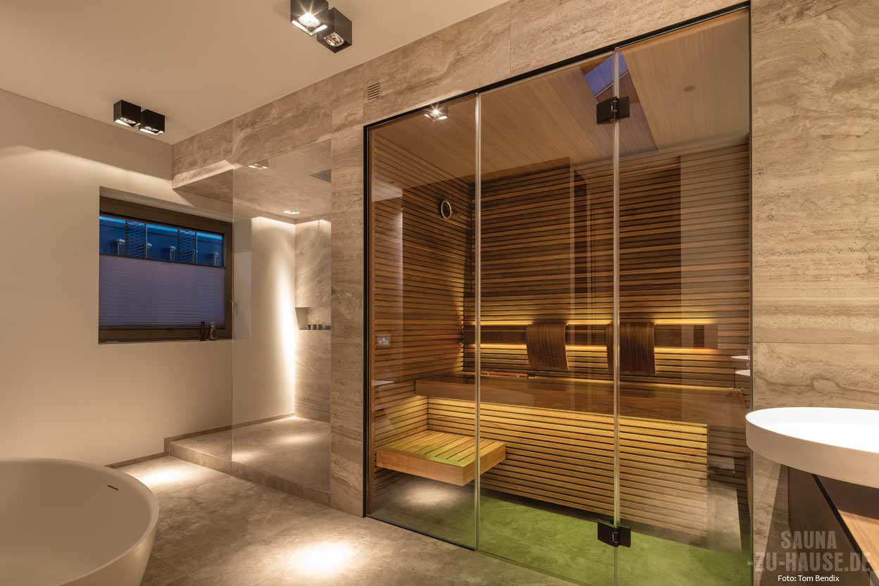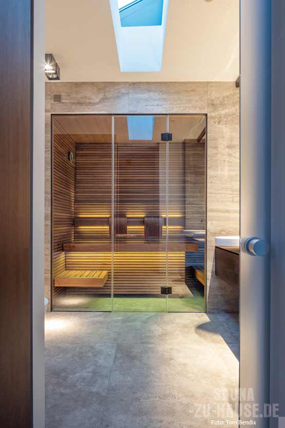 Die perfekte Integration ins Bad hat neben dem ästhetischen Aspekt aber noch einen weiteren Vorteil: Die Bewohner haben ihre Wellnessoase immer im Blick und werden sich täglich eine Auszeit gönnen – ohne dass sie dafür extra in den Keller gehen müssen.