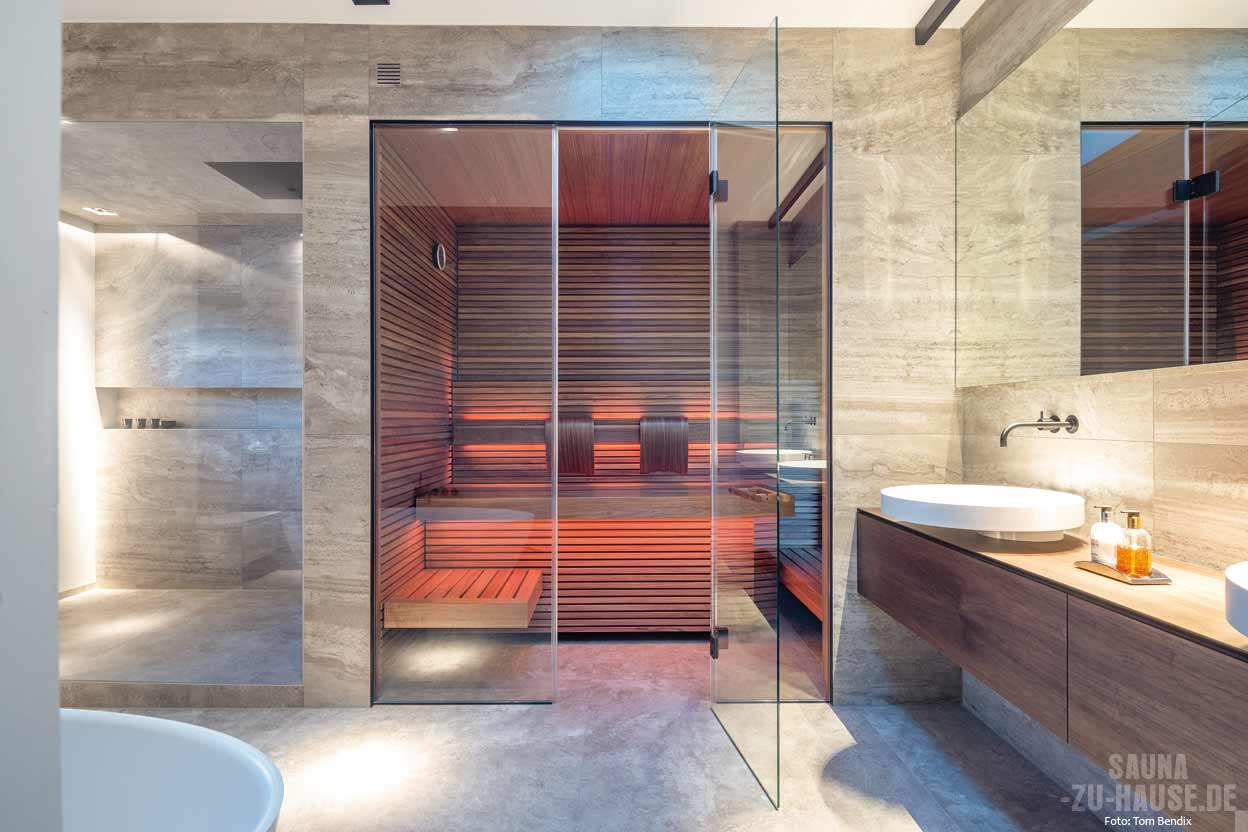 Saunen führen längst kein Schattendasein mehr in versteckten Kellerräumen. Sie sind zu besonderen Designobjekten geworden, die über ihre reine Funktion hinaus auch ein ästhetisches Statement setzen. Integriert ins Badezimmer, verwandeln sie den Waschraum in einen Wohlfühlort mit Private-Spa-Charakter und bieten damit eine Auszeit vom Alltag in absoluter Privatsphäre.