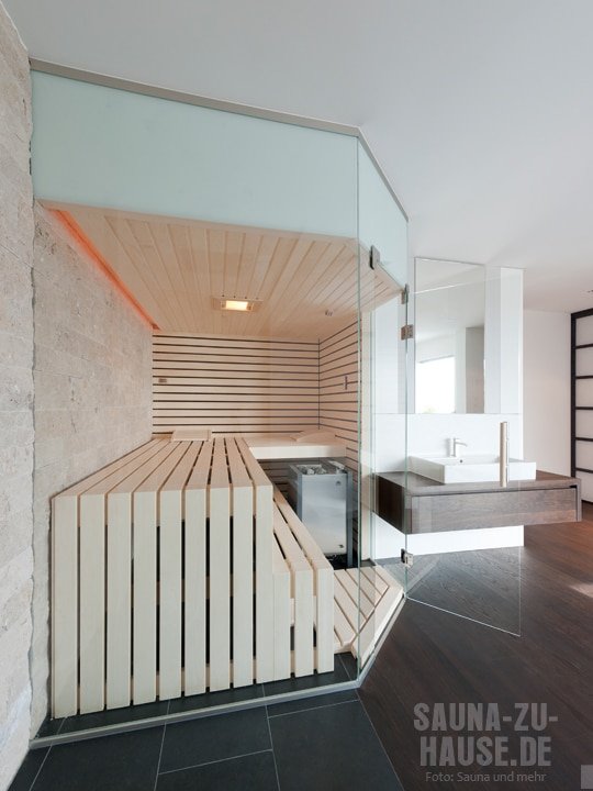 Gerade für die Ruhephasen, aber auch für die Saunagänge selbst, ist es wichtig, dass die Sauna sich in einem schönen Umfeld befindet. Wohnliches Ambiente ist bei der Entspannung dabei ein nicht unwesentlicher Faktor. Deshalb bedeutet Wellness im eigenen Heim schon lange nicht mehr die Verbannung der Sauna in den Keller. Vielmehr wird sie als Teil des Wohnraums in diesen integriert. Oftmals wird sie Teil des Badezimmers, welches sich im Zuge des Wellnesstrends selbst in einen großzügigen Wohnraum wandelt. Auf großzügiger Fläche werden Bäder wahre Wellnesstempel, die neben der Sauna große Duschflächen und eine Zone zur Entspannung bieten. aber auch für kleine Bäder bieten Hersteller passende Lösungen. So gibt es zahlreiche Firmen, die Elementsaunen auch mit kleinen Maßen verkaufen oder aber speziell auf Wunsch in der passenden Größe einbauen. Generell gilt nicht nur bezüglich der Größe: Dem Begehren nach Individualität und Design sind keine Grenzen gesetzt. Nahezu jede Optik lässt sich umsetzen, wobei von klassischer Polarfichte mit tollem Aroma bis zu edlen exotischen Hölzern alles möglich ist. Im Trend liegen außerdem große Glasfronten, die den Übergang von der Sauna zum Wohnraum und umgekehrt fließend werden lassen. Mittels modernstem Design entstehen ganzheitliche Wohlfühlzonen, die vor allem eines garantieren: die totale Entspannung in der totalen Privatsphäre.