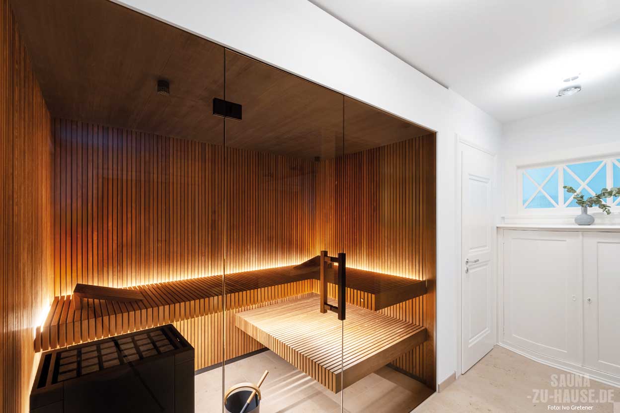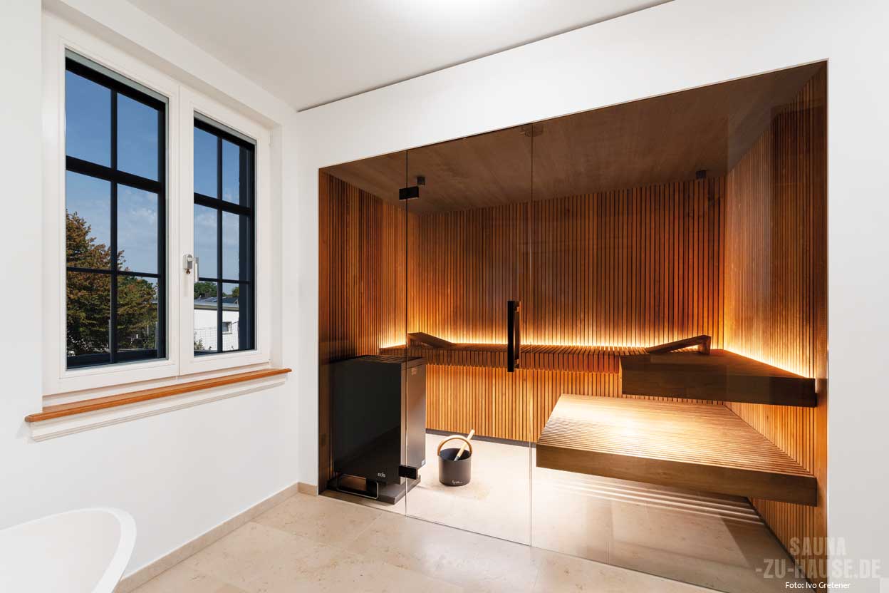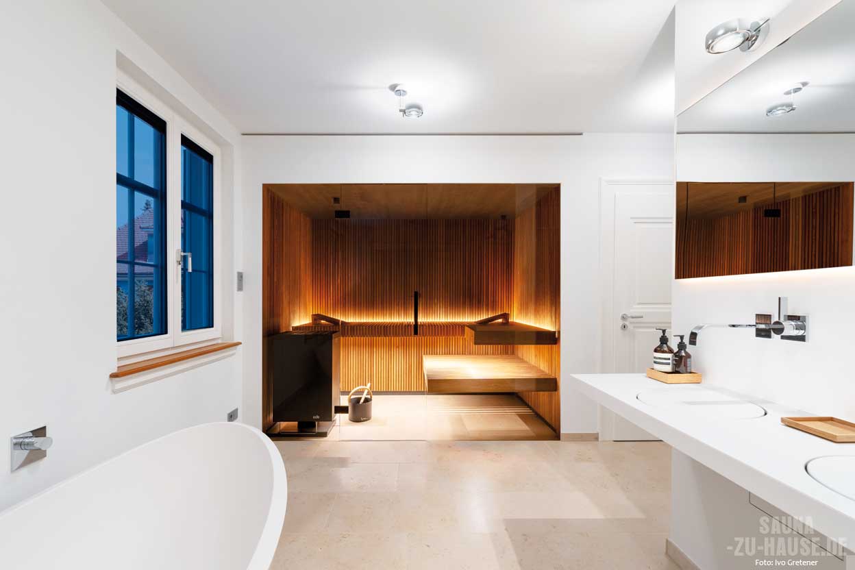 Trotz des umfangreichen Badumbaus lief die Planung der Sauna reibungslos. Die Nische, in die die Sauna eingebaut wurde, bot ideale Voraussetzungen, sodass die Umsetzung schnell und effizient vonstattenging. „Die Sauna ist jetzt das Highlight in unserem Bad“, resümieren die Besitzer. „Sie fügt sich perfekt in den Raum ein und wir freuen uns schon darauf, sie im Herbst und Winter häufig zu nutzen. Besonders für eine schnelle Entspannung am Abend ist sie ideal.“