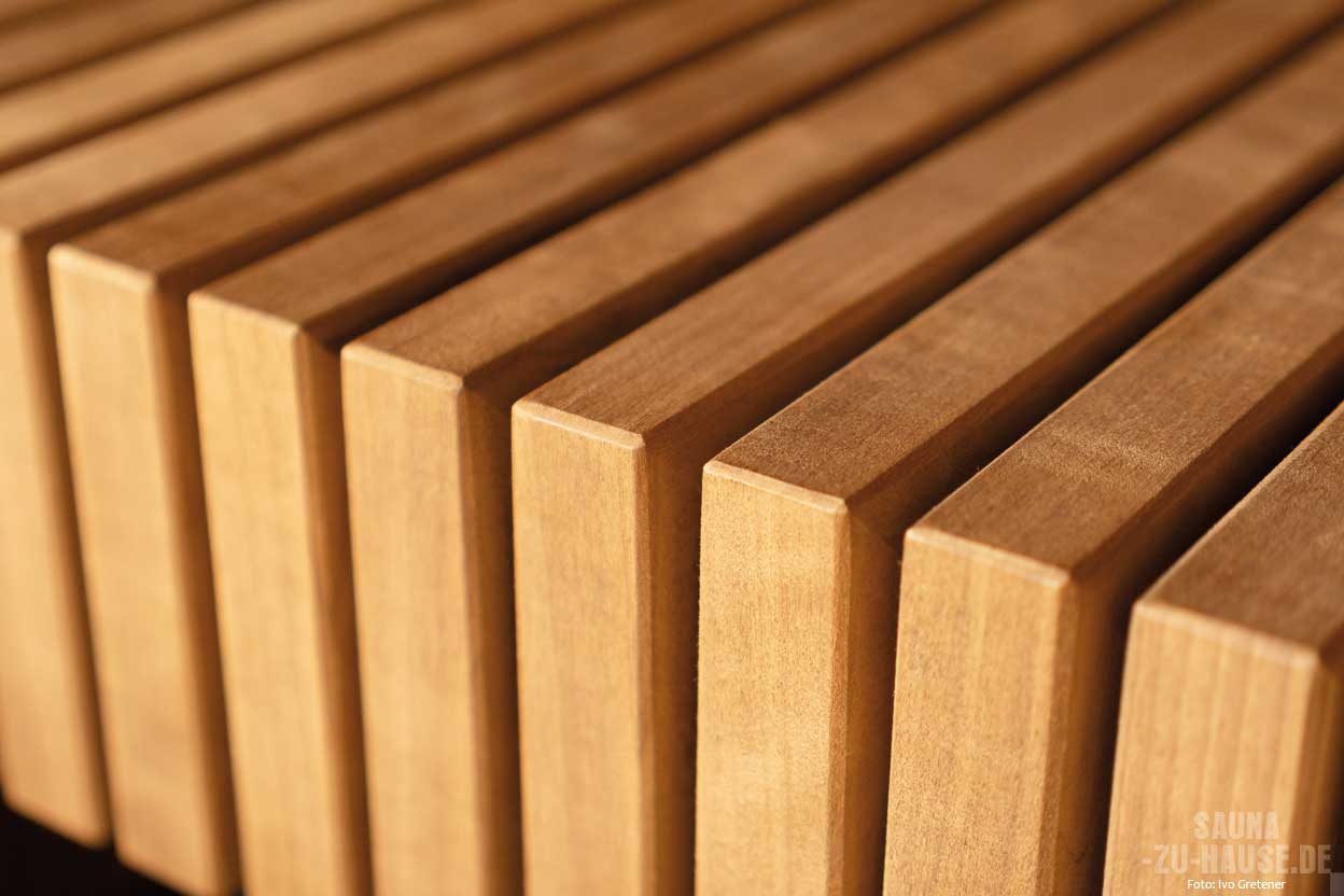 Nach ausgiebiger Recherche fiel die Entscheidung auf die Corso Saunamanufaktur: „Wir suchten nach einer individuellen Lösung, die zu unserer gehobenen Einrichtung passt. Die Projekte auf der Corso-Website haben uns sofort überzeugt.“ Der Wunsch nach einer besonderen Stäbchenoptik stellte eine handwerkliche Herausforderung dar, da die vorhandenen Profile nicht den Vorstellungen entsprachen. Also wurden eigens für dieses Projekt die feinen Stäbchen gefertigt – ein Detail, das heute den Charakter der Sauna prägt.