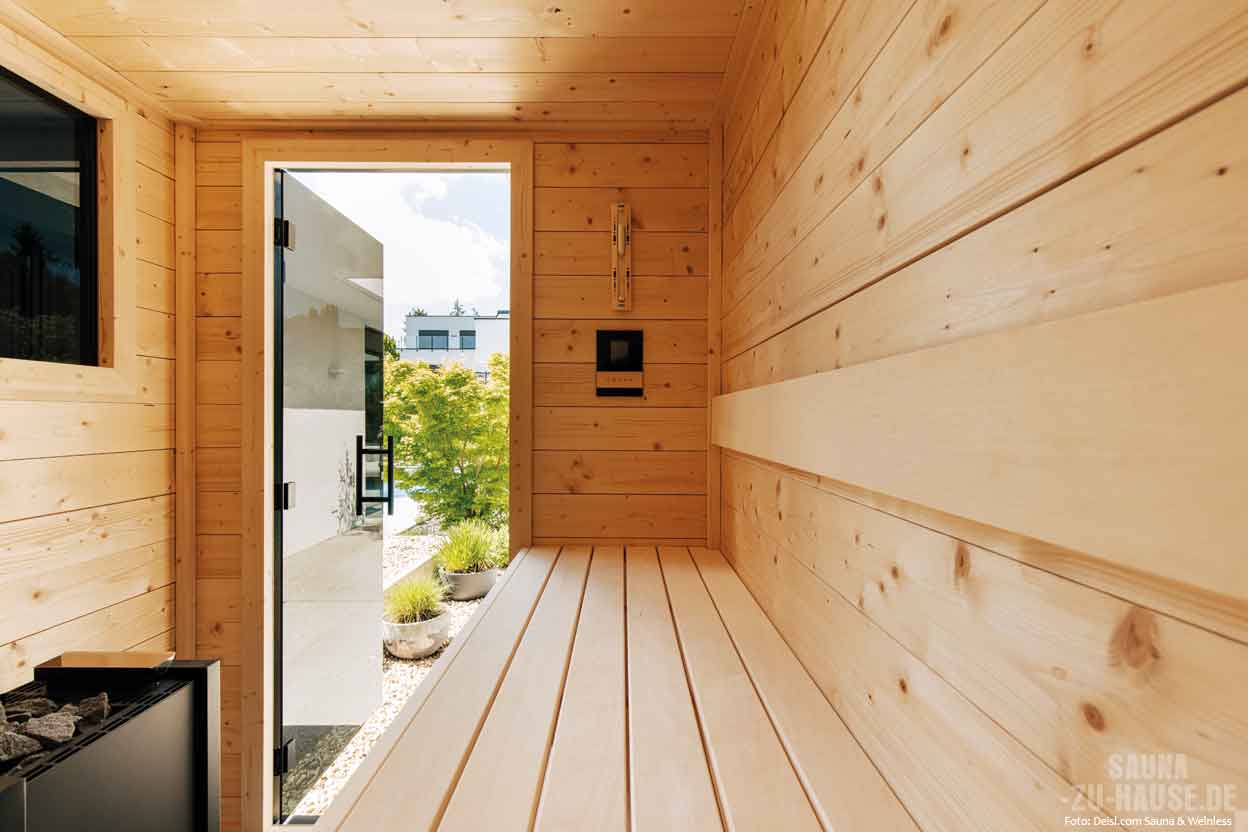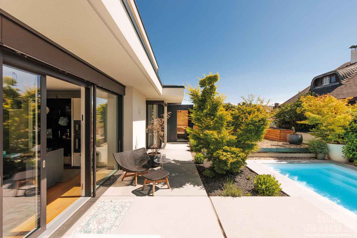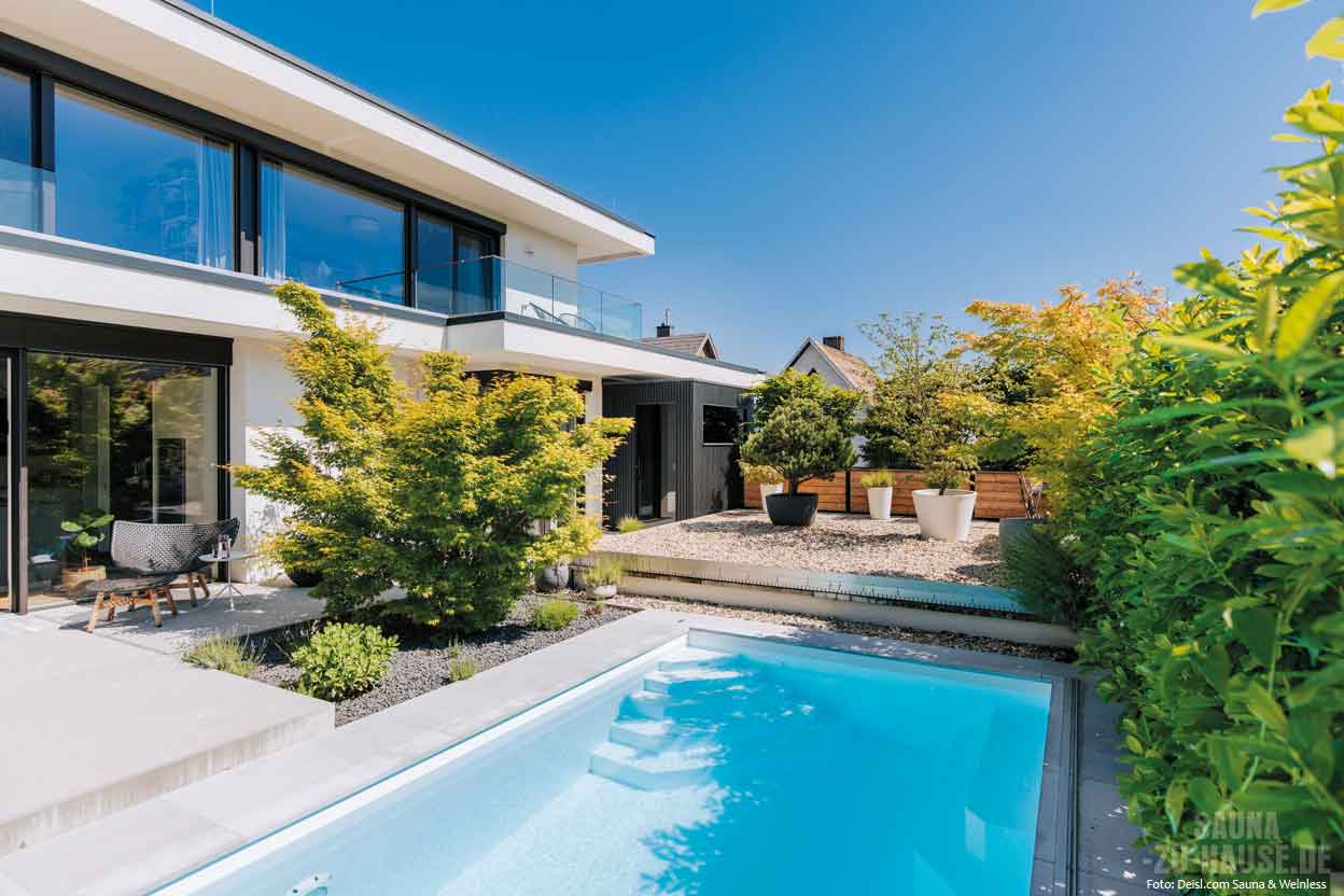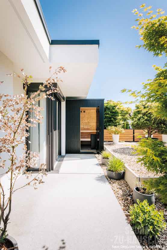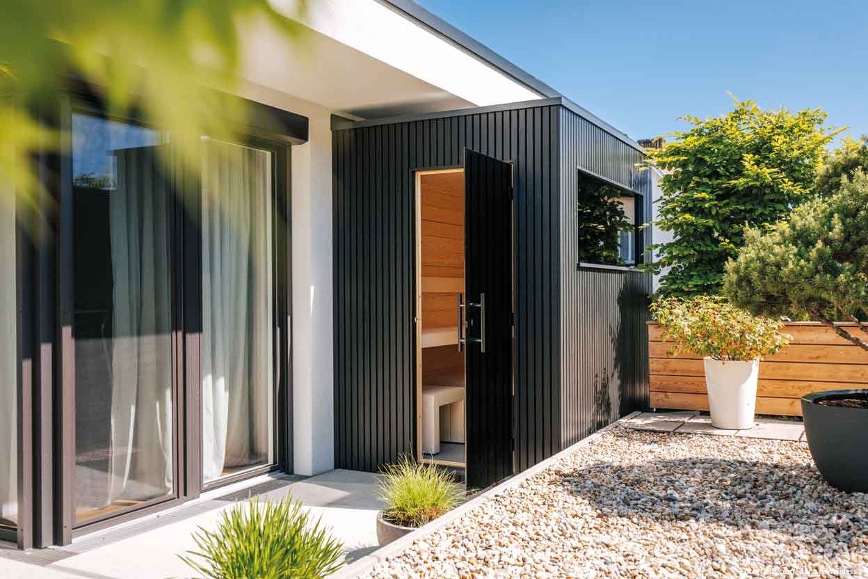 Mikko Kenn, ein Pilot mit finnischen Wurzeln, und seine Familie haben lange auf eine Sauna verzichtet, bis sie auf das Profi-Team von Deisl Sauna & Wellness stießen. Hier verstand man es, eine Außensauna zu entwerfen, die optisch zum Stil des modernen Wohnhauses passt, sich in die natürliche Umgebung des Gartens einfügt – und das Saunieren im dicht besiedelten Wohngebiet ermöglicht, ohne gesehen zu werden.