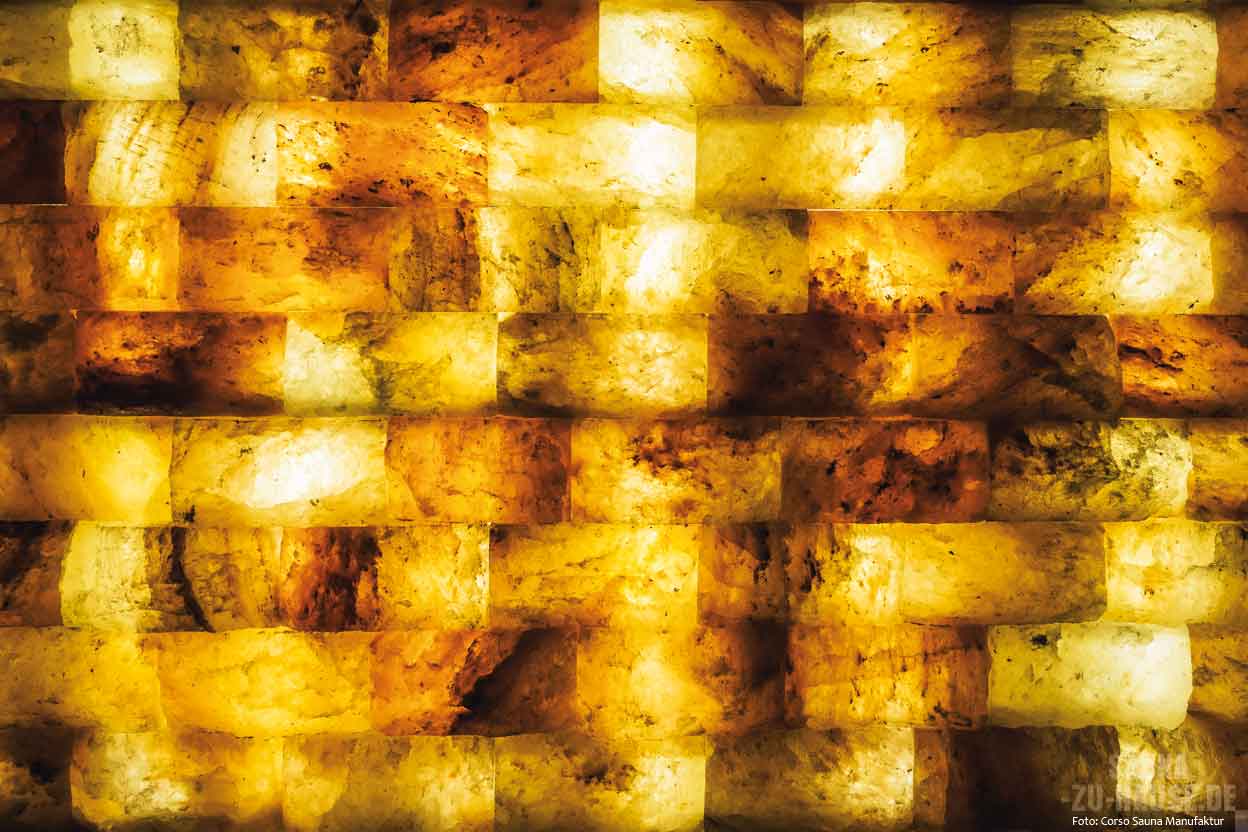 Die positiven Effekte von Sauna-Salzanwendungen werden von vielen Saunabesuchern geschätzt. Aber es gibt noch eine weitere Art, Salz in der Sauna zu genießen. Die Helo GmbH mit Sitz im hessischen Knüllwald-Wallenstein bietet für zahlreiche ihrer Premium-Saunakabinen die Möglichkeit, eine Rückwand aus Salzsteinen zu integrieren. Das ungewöhnliche Erscheinungsbild der Salzelemente wertet das Design jeder Sauna in ganz besonderer Weise auf und sorgt so für einen markanten Blickfang. Ein ganz besonders faszinierender Effekt entsteht, wenn die optionale Salzwand mit farbigem LED-Licht hinterleuchtet wird. Denn damit lässt sich jede gewünschte Stimmung im Inneren der Sauna erzeugen. Ganz einfach mit dem Farbregler der LED-Beleuchtung werden die Farben ausgewählt, angefangen vom klassischen Weiß über Gelb oder Grün bis hin zu den attraktiven Rot-, Violett- und Blautönen. So lädt die Designsauna mit Salzwand jederzeit zum stilvollen Entspannen und Auftanken ein.